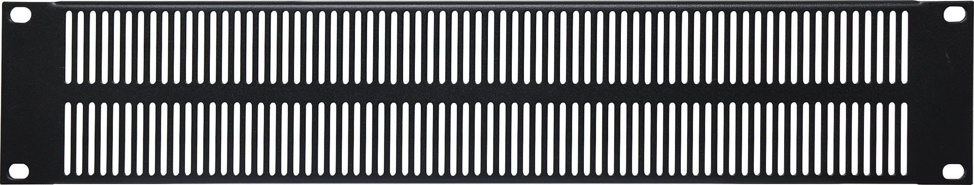 2 unit high. Black powder coated finish. Vented. Ideal for any 19" rack system which requires additional ventilation to help keep equipment cool.