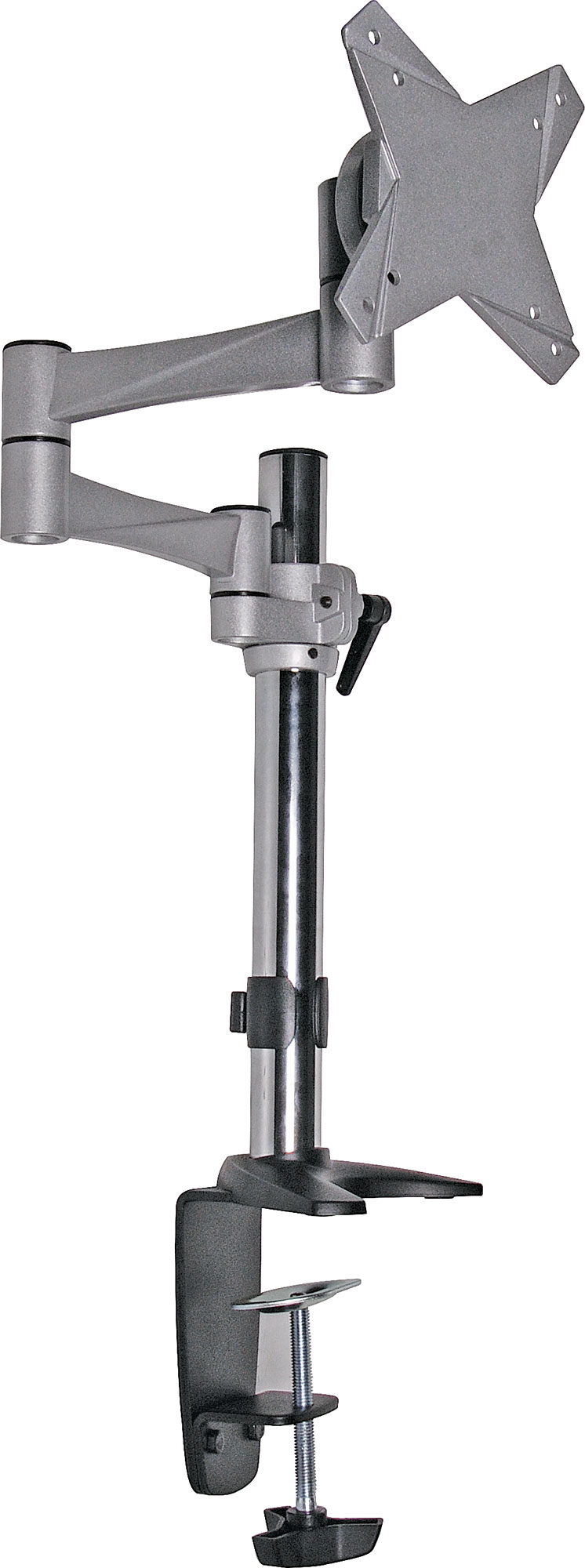 This stylish desk mount bracket simply clamps or screws to your desk and supports 13" - 27" monitors weighing up to 8kg. Height may be adjusted between ≈365mm to 510mm to suit your needs. Maximum depth from mounting point is 432mm. The desk clamp suits a 10-90mm thick desktop. Suits VESA MIS-D 75 & 100mm. Swivel arm structure allows maximum flexibility. Extend, tilt and swivel your monitor up to 90° left and right for easy viewing. The ball-joint structure allows for a smooth, effortless tilt motion in any direction, making it easy to find the perfect viewing angle. You can also adjust the monitor vertically to a desired height. Cable clip is included for organizing cables.