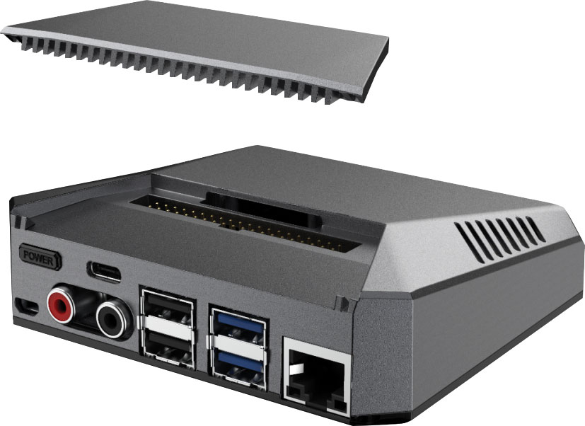 Turns your Pi into a high resolution network music player for MP3, FLAC, ALAC, WAV, AAC, FLAC, DSD, Audio CD and many more file types. On-board DAC for very high quality audio output. The ideal home music server for the audiophile! All aluminium case provides excellent cooling for your Pi 4.