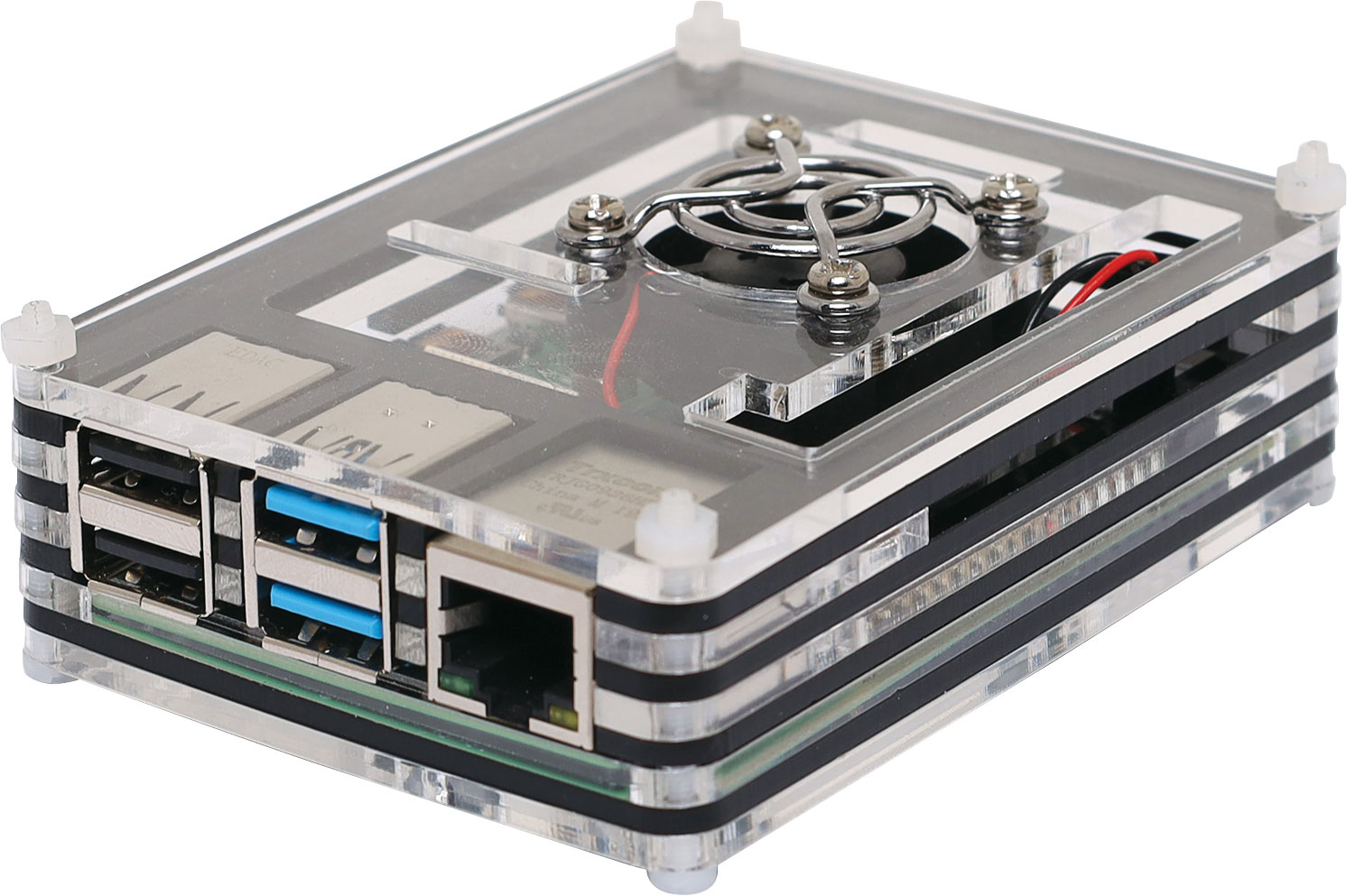 This compact multi-layer acrylic case suits the Raspberry Pi Model B 4 and provides access to all ports on the board. To keep your Pi cool, a 5V fan with header connection is provided, plus grill cover. Please Note: Raspberry Pi 4 is photographed for illustration purposes only. The case does not include a Raspberry Pi 4 (see accessories below)