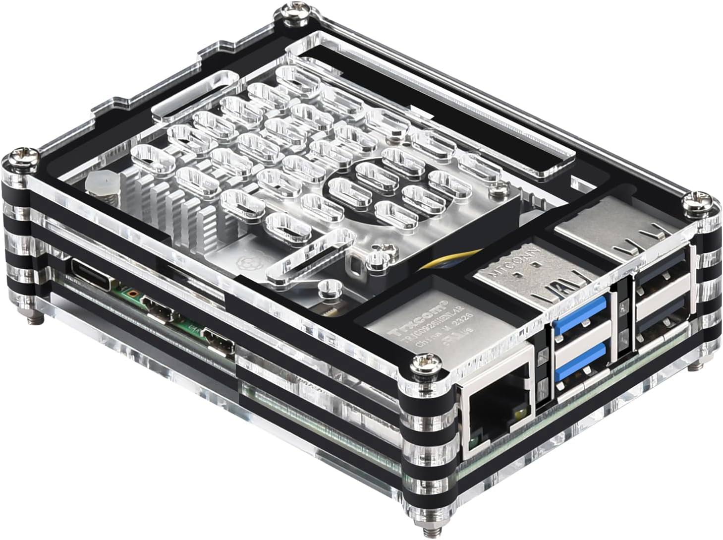 This compact multi-layer acrylic case suits the Raspberry Pi 5 and provides access to all ports on the board. To keep your Pi cool, a 5V fan with header connection is provided with integral heatsink. Please Note: Raspberry Pi 5 is photographed for illustration purposes only. The case does not include a Raspberry Pi 5 (see accessories below)