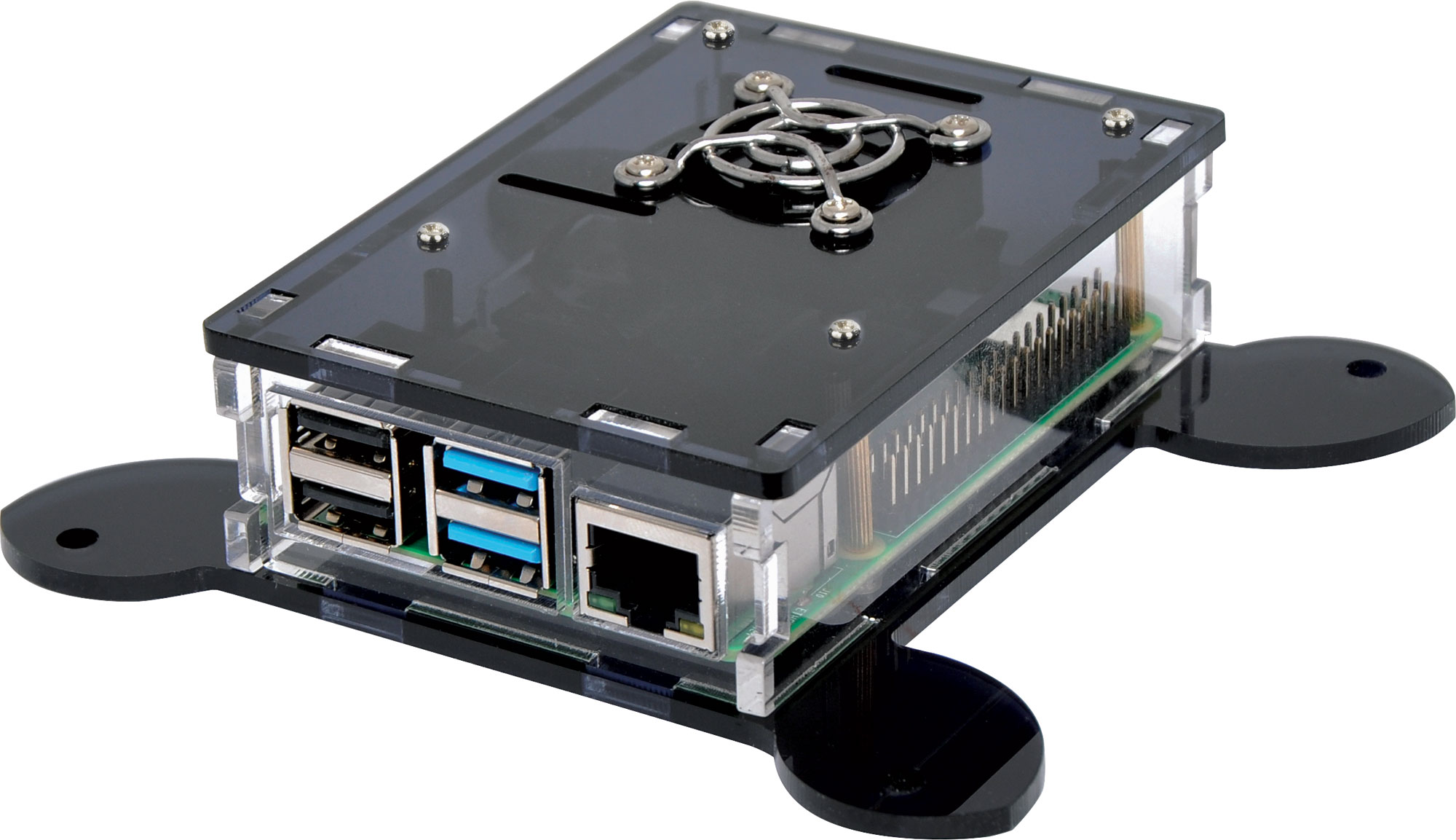 Allows VESA mounting of your Raspberry Pi 4 to the rear of a monitor using standard 100mm spacing VESA bolt holes. Made from laser cut acrylic plastic. Internal fan for added cooling. Please Note: Raspberry Pi 4 is photographed for illustration purposes only. The case does not include a Raspberry Pi 4 (see accessories below)