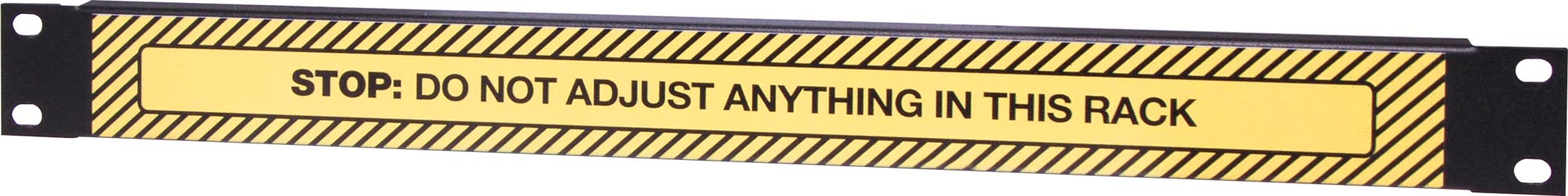 Manufactured from 1mm steel and finished in a textured powder coat. The top and bottom edges of each panel have a return for added rigidity. Screen printed in safety yellow for extra visibility to deter people from altering settings and cabling of rack mounted equipment.