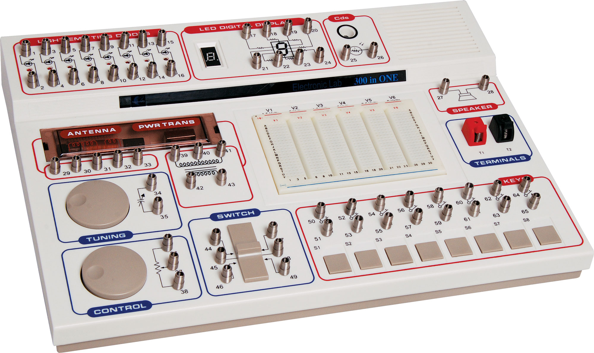 This Electronic Science Lab will teach you about electronics from A to Z. You will learn about electronic parts, how to read schematics, and wiring diagrams. All this, while building up to 300 different projects. This kit uses two quick and easy hook-up methods: 1. Spring Method: Simply slip pre-cut wires and components into special springs for a safe, secure connection. 2. Breadboard Method: Featured in this advanced kit, this system is used by professionals and engineers. Just plug the components and wires into the special breadboard socket holes. No soldering is required. Everything uses battery power - no dangerous AC is required, so it''s safe for all ages. Labs come with all components and wires needed to build each project. NO TOOLS ARE REQUIRED. No prior knowledge is needed to assemble and build these exciting projects. Easy-to-read, illustrated, lab-style manuals take you through each electronic experiment step-by-step. These are ideal for MIDDLE SCHOOLS and HIGH SCHOOLS. Requires 6 x AA batteries (sold separately) Suitable for children aged 14 and over
