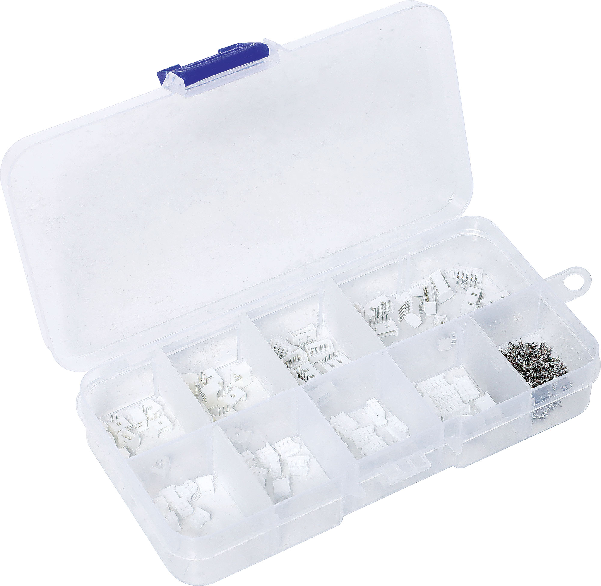 An assortment of right angle 1.25mm pitch boxed PCB connectors and matching plugs in 2, 3, 4 and 5 way varieties. Plus crimp pins to suit plug housings. 150pcs total.