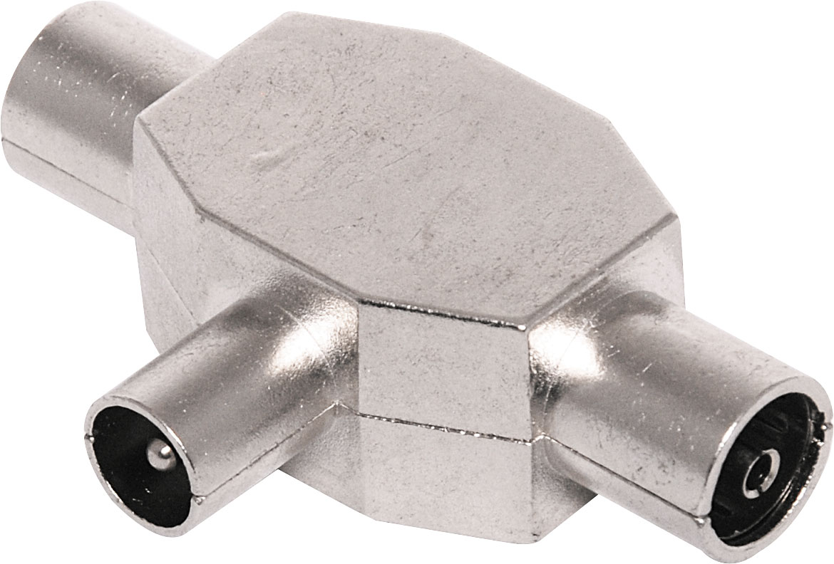 Simply connects in line to provide two outlets. ie. TV and FM radio from one TV antenna.