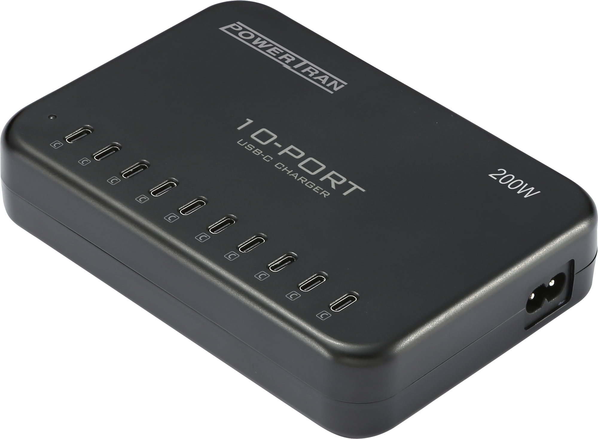 This 10-port USB charger allows you to charge up to 10 devices at once. It features 10 USB Type-C charging ports providing up to 200W of charge capacity across all ports. It''s ideal for classroom or business environment where multiple tablets and phones are in use in a shared space. It''s also great for families looking to charge their devices from a central location. Includes AC power supply and two device stands that can support up to 5 devices each. Size: 156 x 109 x 33mm. Please Note: Devices and device connection leads not included.