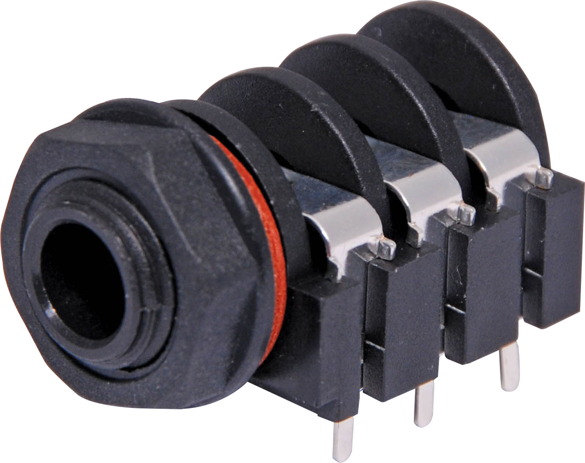 6.35mm PCB mount stereo socket with 3PST switched contacts. Insulated from Chassis. Mounting Hole 11mmØ