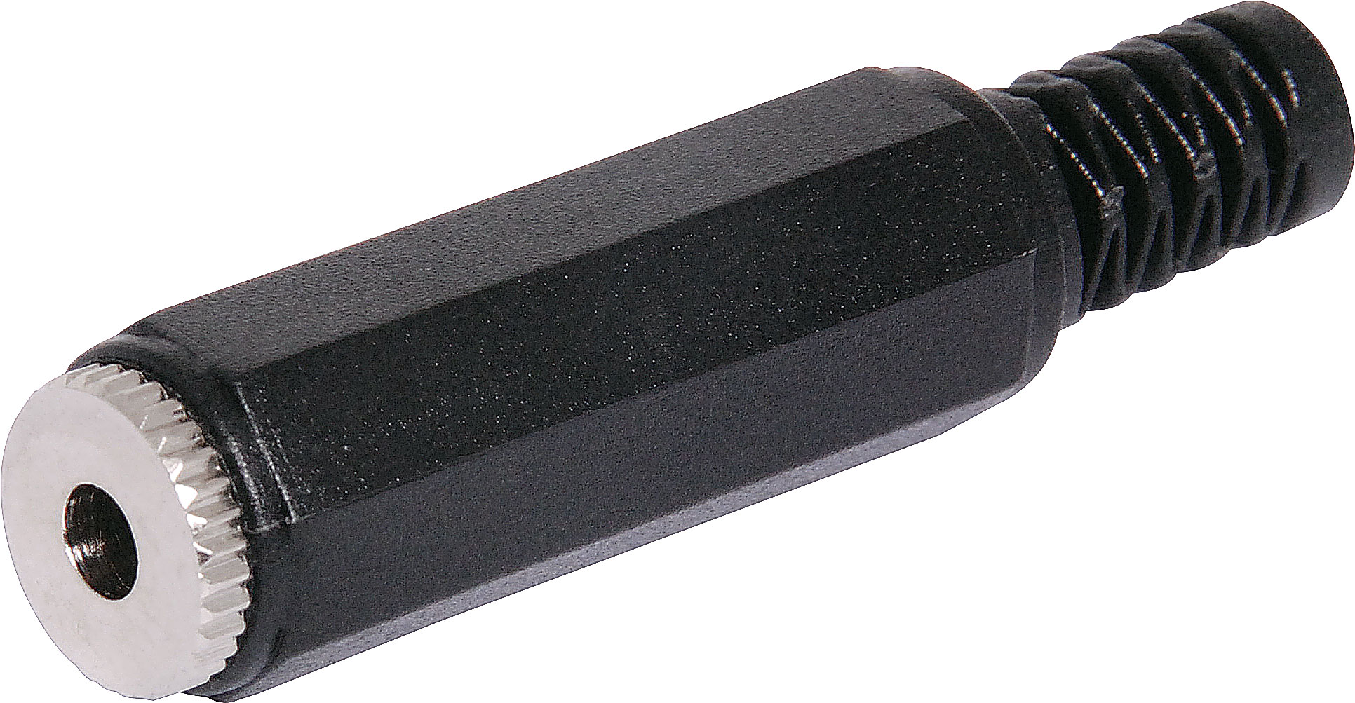 An economical 3.5mm stereo type jack socket connector with black housing. The plastic strain relief helps to minimise cable wear and tear, protecting the integrity of the internal connection. Suitable for use with standard shielded audio cable, requires soldering.