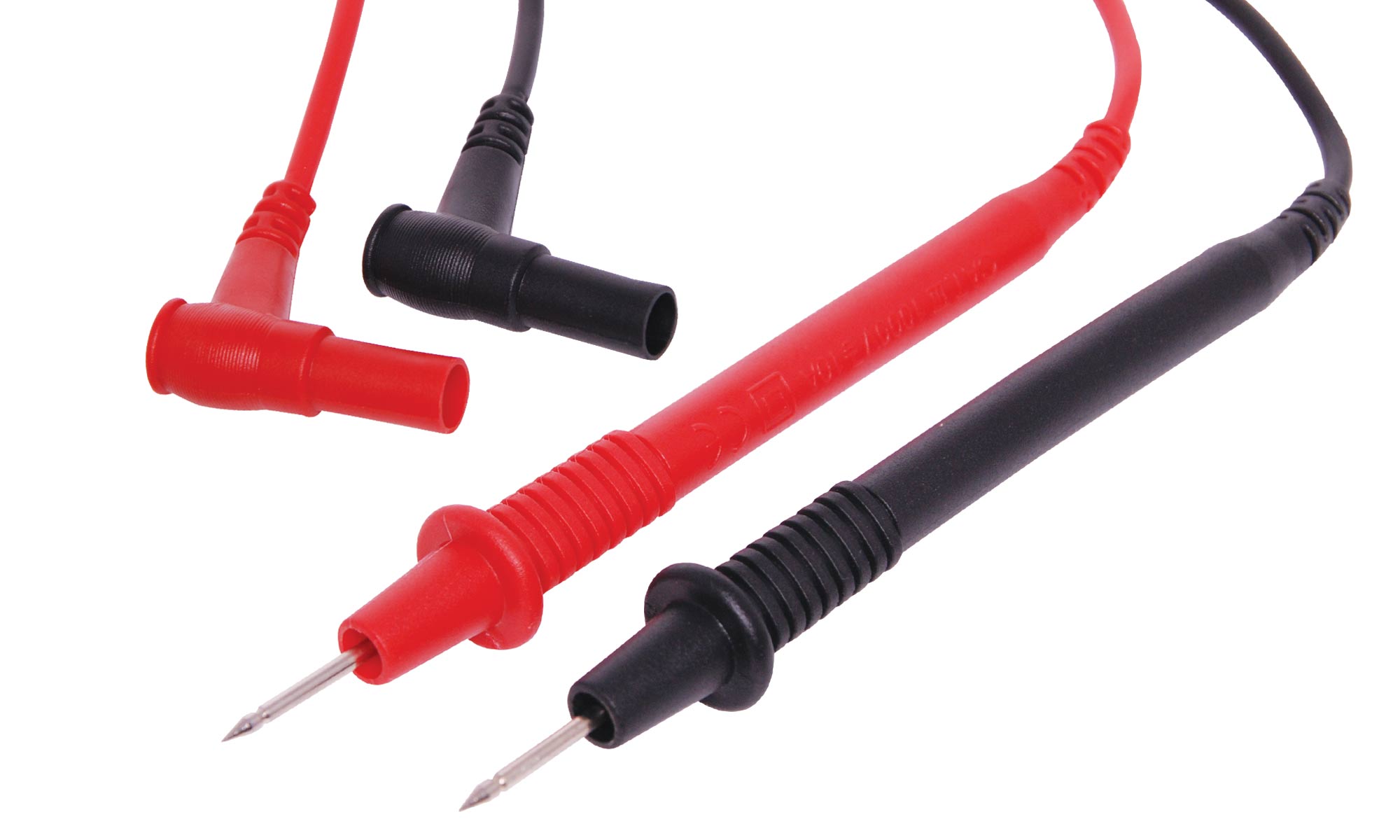 Professional quality silicone leads with angled shrouded banana plugs to pin probes. Cat III rating: 1000V Cat IV: 600V Maximum current: 10A