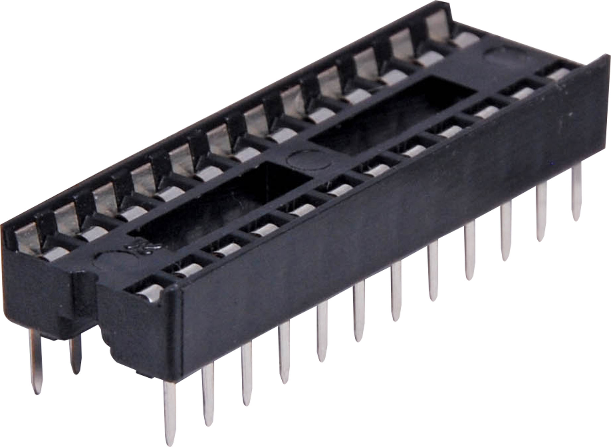 Quality Oupiin brand 8003 series, 24 pin DIL IC socket with dual wipe and tin plated phosphor bronce contacts. Standard 2.54mm (0.1") pin spacing, 7.62 (0.3") pitch.
