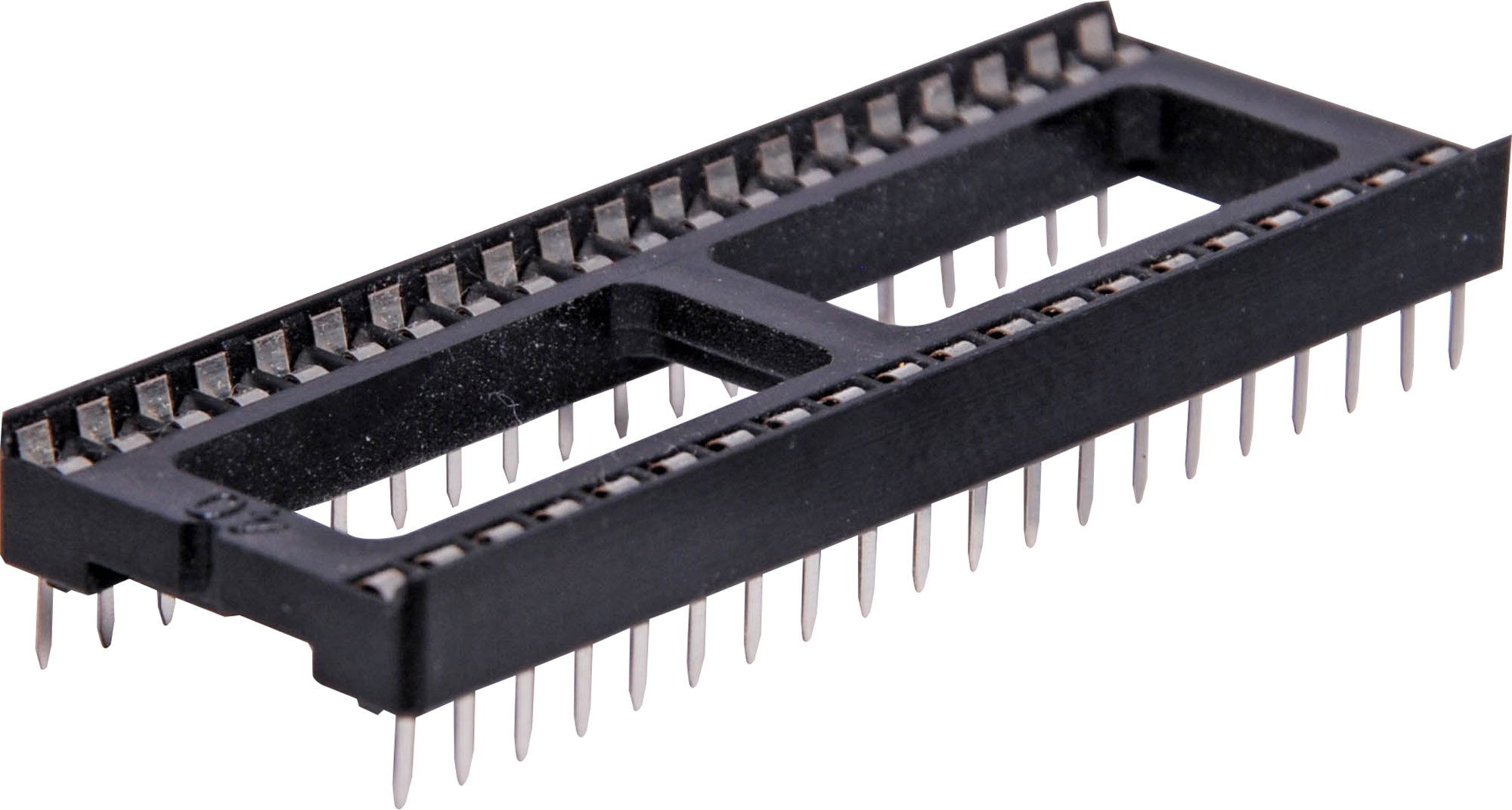 Quality Oupiin brand 8003 series, 40 pin DIL IC socket with dual wipe and tin plated phosphor bronce contacts. Standard 2.54mm (0.1") pin spacing, 15.24 (0.6") pitch.