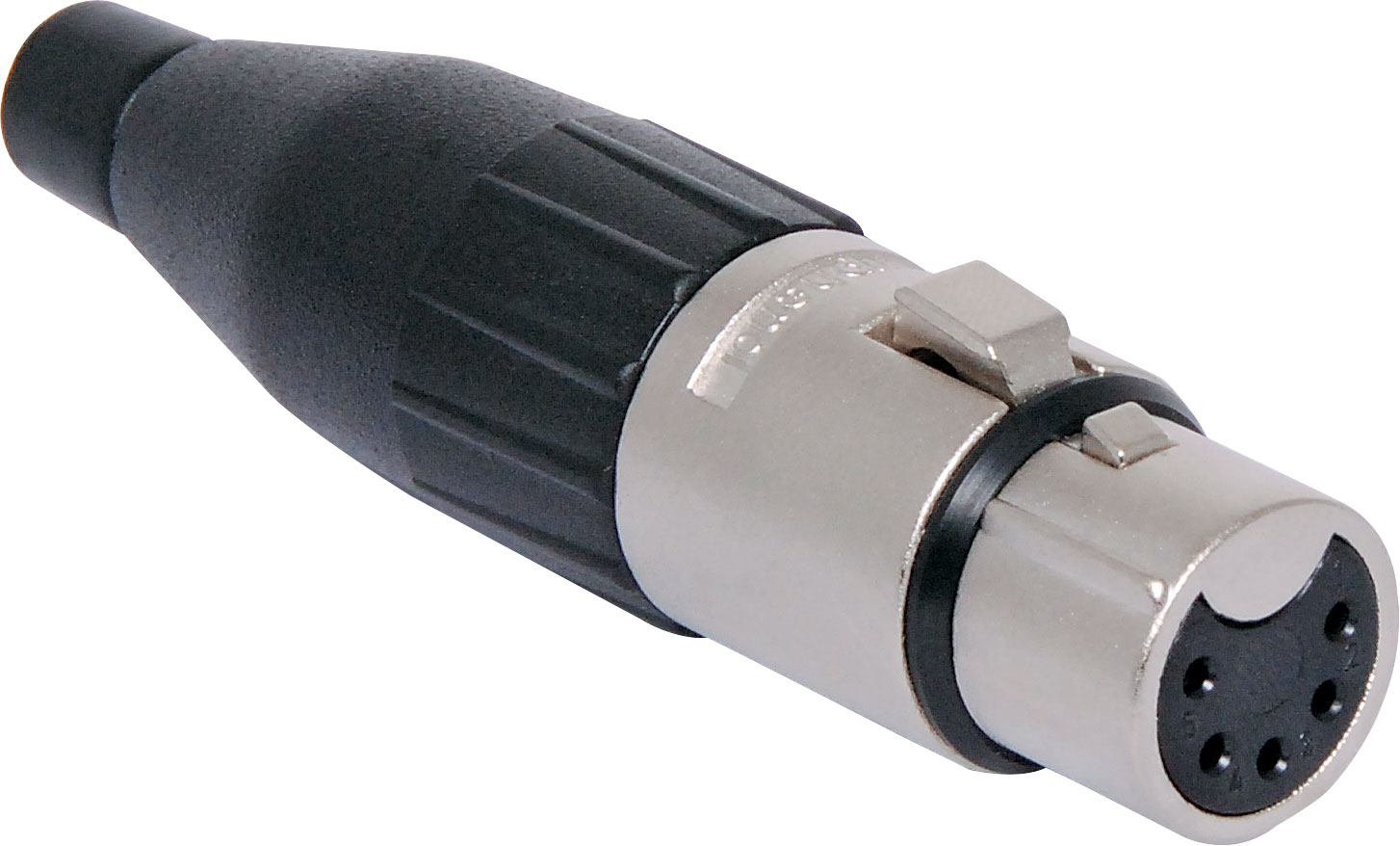 AMPHENOL (formerly Alcatel) connectors are ideal for use in high performance audio applications, including mobile PA use. They represent a no-compromise approach to connector technology, with rugged construction, secure mechanical characteristics and low induced noise levels. Amphenol Part No.: AC5F. The 5 pin XLR connector is most commonly used for interconnecting DMX512 lighting equipment but is also found on some broadcast camera equipment.