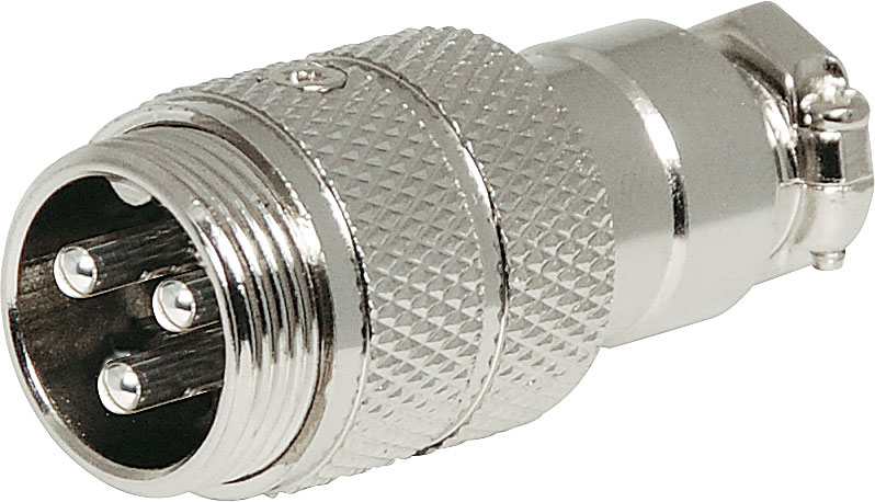 Lockable metal connector commonly used on CB radio microphones. Popular due to their robust construction and the threaded locking collar which prevents disconnection at inopportune moments. They are also used as a low voltage DC power connector in a range of electronic devices. Mates with P0949. Male Line Plug 3 Pin Rated 32V DC 10A