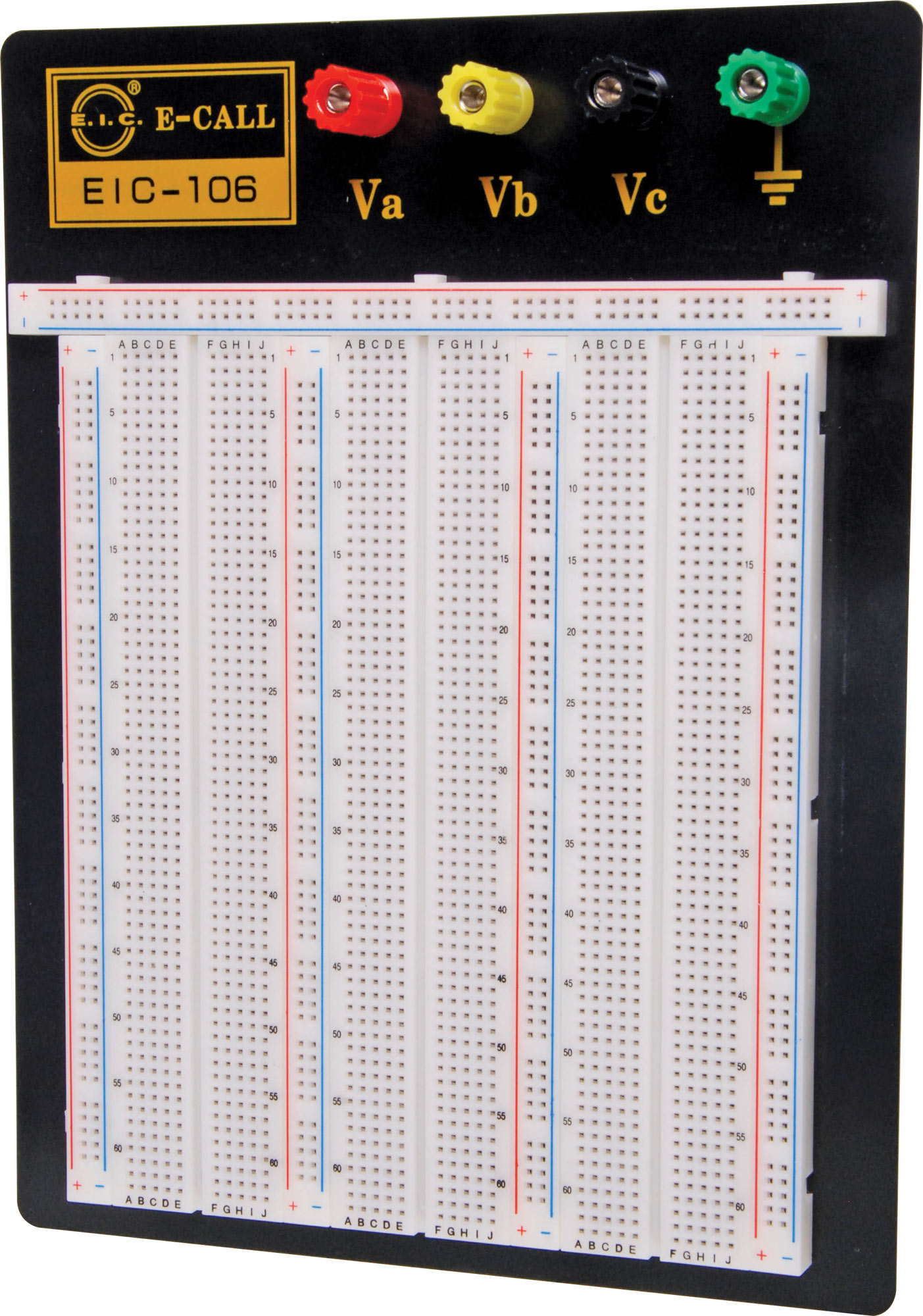 Mounted on an aluminium base with rubber feet. Includes binding posts for power supply connections. 0.1" (2.54mm) spacing. 2 Types Available - P1012A: Accepts up to 16 x 16 pin DIL ICs. 1660 Holes P1015A: Accepts up to 24 x 16 pin DIL ICs. 2309 Holes