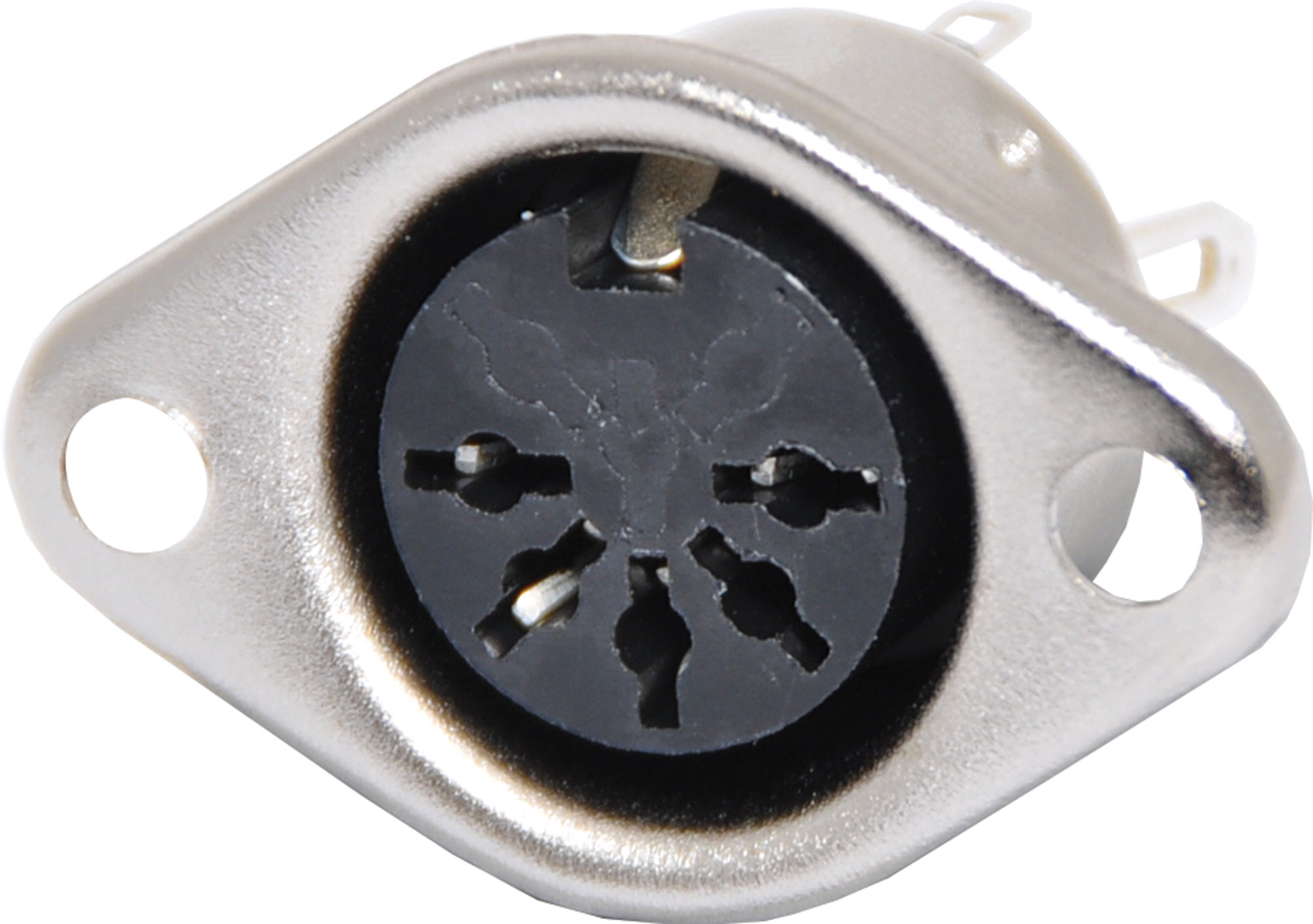 The DIN 41524 standard connector despite becoming less common in recent years is still a good option for the hobbyist as a low power DC or data connector. It has a keyway which prevents incorrect pin alignment and comes in a wide range of pin numbers. Chassis Socket