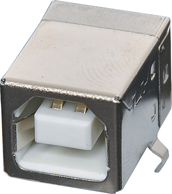 Standard Type B USB 2.0 connector. Horizontal PCB mount.