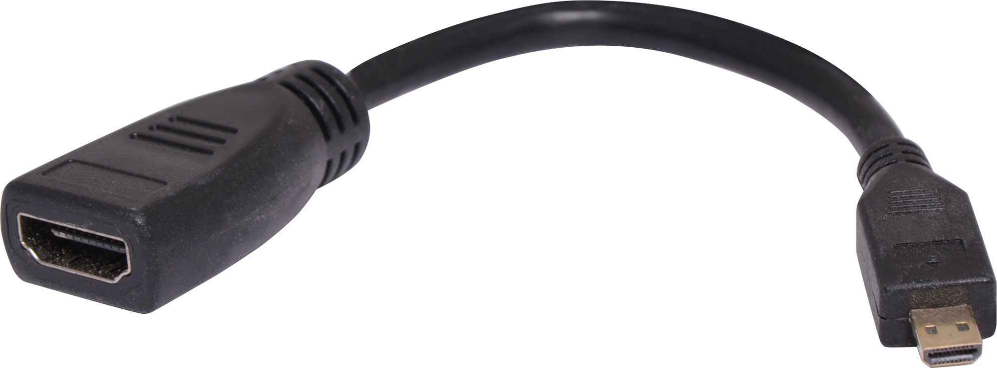 An adaptor for connecting standard HDMI cables to a micro HDMI port, such as those found on the Raspberry Pi 4 and other compact AV devices. Length: 160mm.