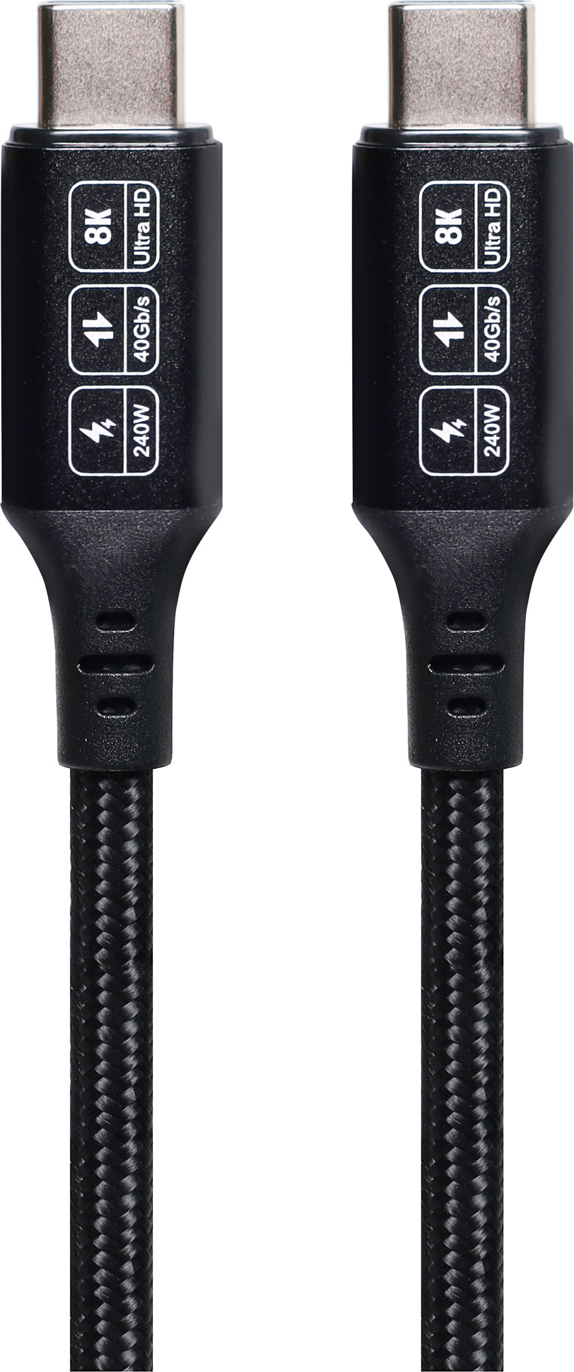 This 1.2m thunderbolt USB C cable is ideal for compatible mobile phone / tablet / laptop devices. It features super fast 240W power delivery and 40Gbps data transfer speeds with 8K UHD video display support and durable anti-tangle nylon braid design. This cable is perfect for users who need fast data transfers, monitor link, syncing and fast charging.