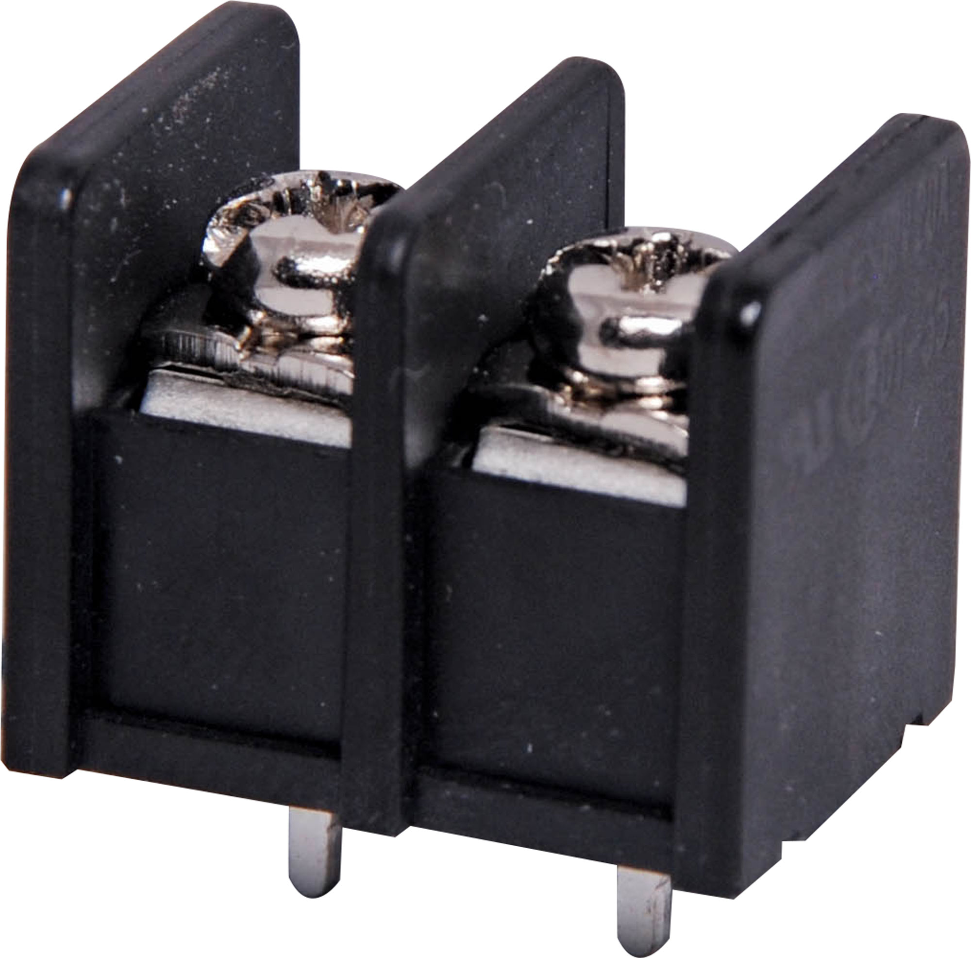 Pin Spacing: 8.25mm Current Rating: 15A at 300V Solder Pins: Tin Plated Brass Screw: Nickel Plated Steel Housing: Polyamide UL94V-O, Black Suits 3mm fork type crimps P 2103, P 2104, P 2105, P 2106, P 2107, P 2108.