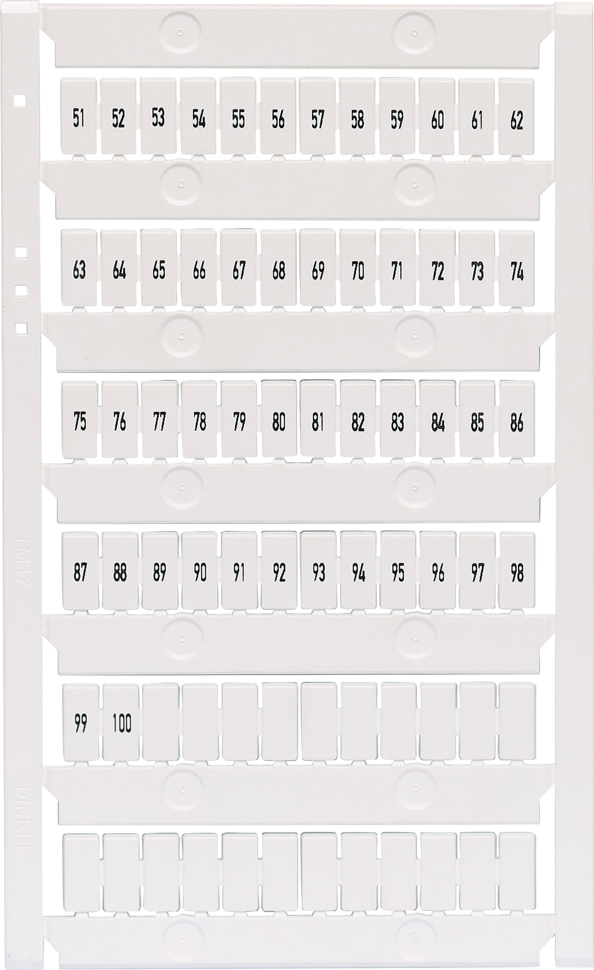 Terminal labels numbered 51 to 100. Suit the following 25A DIN Rail terminals: P 2400, P 2407, P 2410, P 2413.