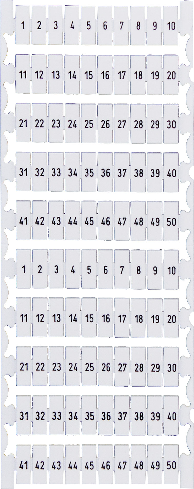 Terminal labels numbered 1 to 50. Suit the following 35A DIN Rail terminals: P 2403, P 2408, P 2411, P2414.