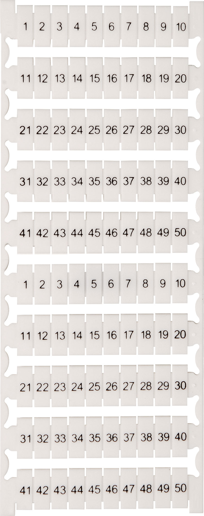 Terminal labels numbered 51 to 100. Suit the following 35A DIN Rail terminals: P 2403, P 2408, P 2411, P2414. *Pic for illustration purposes.