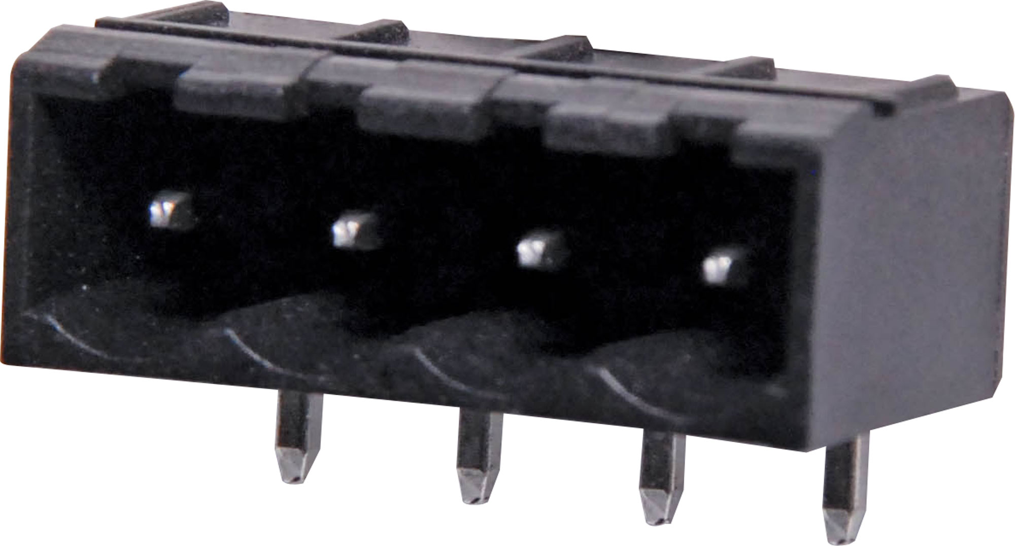 Constructed from high temperature plastic suitable for reflow soldering. 4 Way. Horizontal Mount Boxed. Rated 10A at 300V. Dimensions: A = 3.49 mm B = 5.08 mm