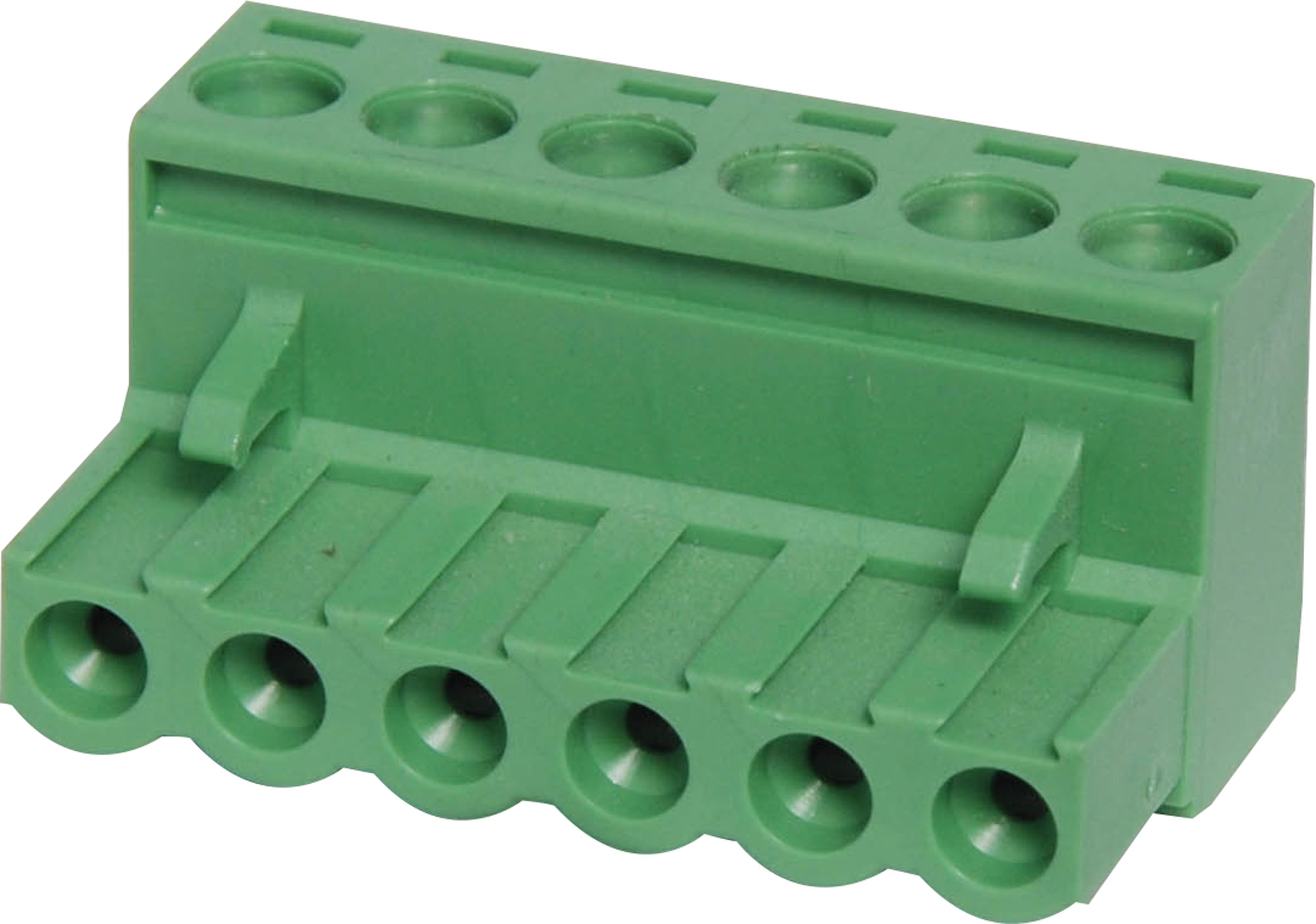 Screw terminal plugs with rising clamp type terminals. 6 Way. Rated 10A at 300V. Cable hole entry size up to 4mm2 or 12AWG.