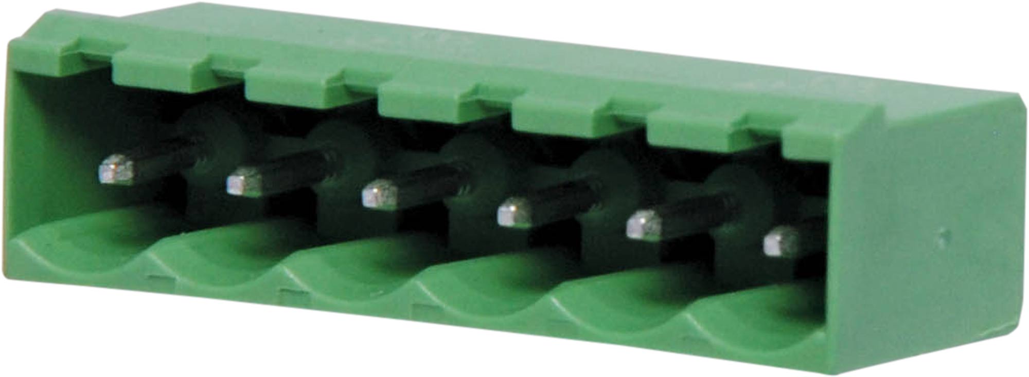 6 Way. Vertical Mount Boxed Rated 10A at 300V Dimensions: A = 3.14 mm B = 5.0 mm