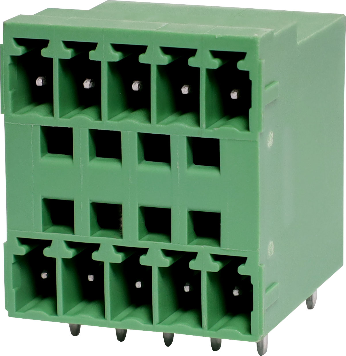 5 x 5 way pluggable socket for PCB mounting. Rated 8A at 300V.