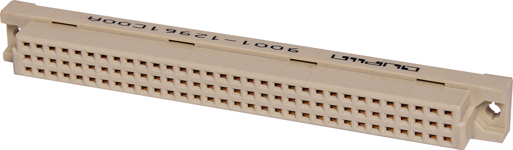 Moulded glass-filled polyester connectors to DIN 41612 with gold contacts. The plug moulding houses single piece 90 deg. Angled pins on a 0.1 inch pitch between rows, allowing horizontal mounting on Eurocards whilst the mating sockets have flow solde