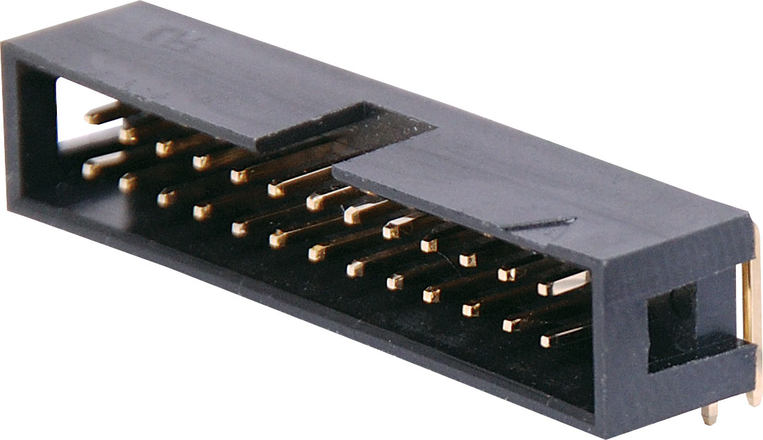 Quality Oupiin 3012 series PCB mount boxed header with 26 pins. 2.54mm (0.1") pin spacing. Available in either straight pin or 90 degree pin versions.