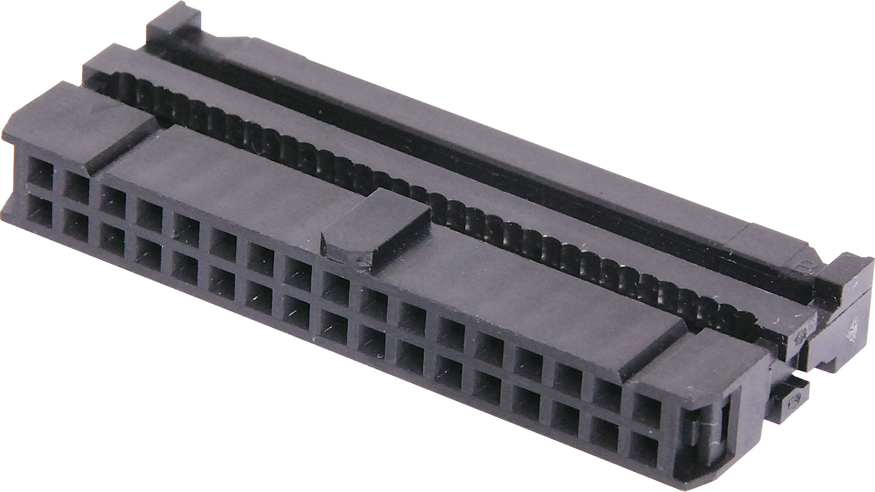 34 pin IDC cable mounting socket. Specifications: Contact Resistance: 30M Ohm max @ 100mA DC Insulator Resistance: 1000M Ohm @ 500V DC Current Rating: 1 A Contact Material: Gold plated brass Housing: PBT & 30% Glass Fibre