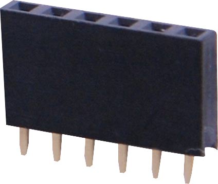 Oupiin 6 way single row header socket for connection to secondary boards with male headers. 0.1" inch (2.54mm) pitch spacing. Gold Plated Contacts. 8.5mm plastic surround height. Oupiin series 2044. Cutting to length Whilst these header sockets do not feature ridges for cutting, they can still be cut to length if required. To do so, you will need to sacrifice one pin on the header. Its often easiest if you get a pair of pliers and remove one pin (or pair of pins) from the strip, then cut through the plastic housing with a study pair of wire cutters. Edges can be cleaned up with some precision cutters or a rotary tool with a fine disc. Note that if these headers are placed end to end, the pin spacing will be increased at the join to 2.74mm. The housing can be trimmed with a sharp knife should this solution be required.