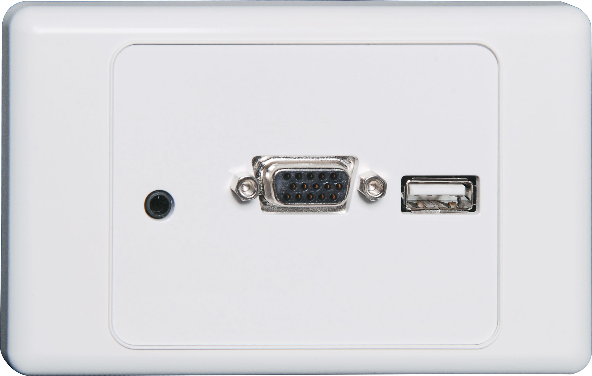 Wall plate fitted with VGA, 3.5mm audio & USB connector. Rear connections are via back to back plugs, suitable for direct connection to terminated leads. Altronics dual cover type wallplate. All wall plates assembled by Altronics are supplied with two facia clip on covers. These are designed to match your current decor. Simply clip on the desired cover after installation.