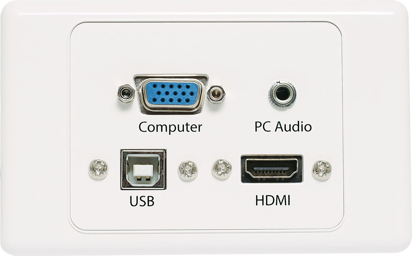 Fly lead type HDMI, VGA, USB type B and 3.5mm. Includes fly lead connections for easy on-site termination. Altronics dual cover type wallplate. Fly Leads: HDMI female 3.5mm stereo audio female VGA female USB Type A female All wall plates assembled by Altronics are supplied with two facia clip on covers. These are designed to match your current decor. Simply clip on the desired cover after installation.