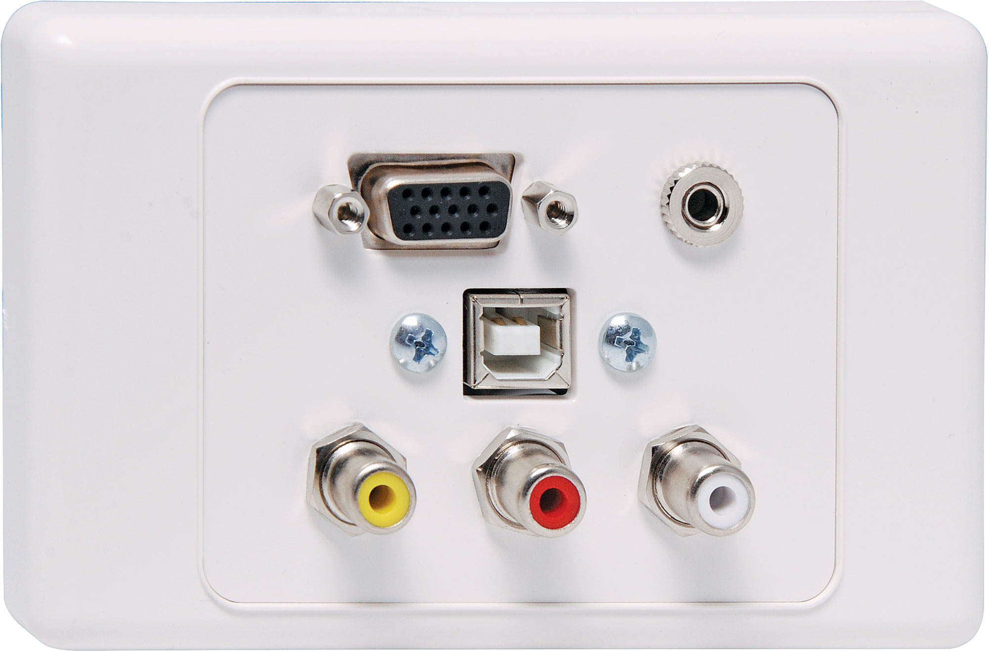 Fly lead type VGA plates are fitted with HD9 female VGA connector, 3.5mm audio, USB type B and three RCA connections. Includes fly lead connections for easy on-site termination. Altronics dual cover type wallplate. All wall plates assembled by Altronics are supplied with two facia clip on covers. These are designed to match your current decor. Simply clip on the desired cover after installation.