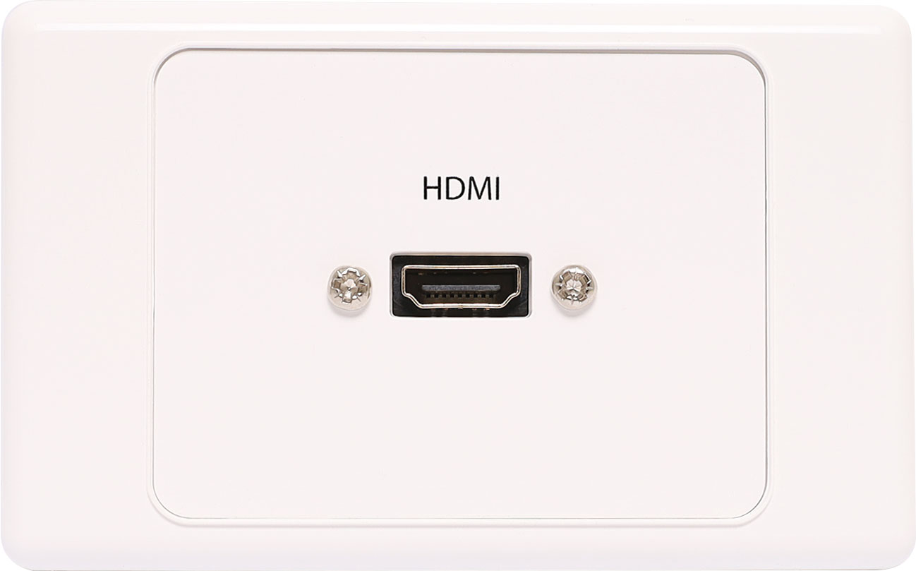 HDMI wall plate, single port. HDMI high speed with Ethernet connection. Rear is fitted with 150mm fly lead and HDMI socket for easy connection. Supplied with two facia clip on covers. These are designed to match your current decor. Simply clip on the desired cover after installation.