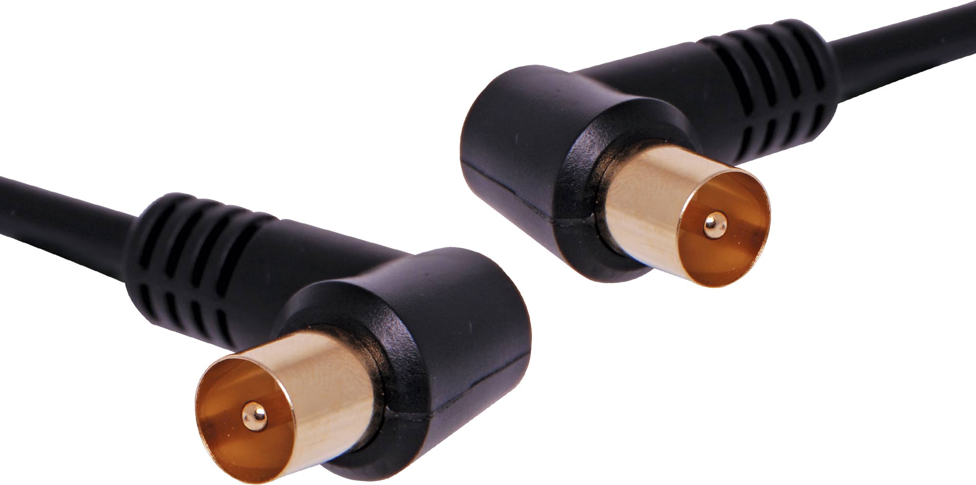 TV aerial/antenna cable (90° PAL male to PAL male). 1.5m length.