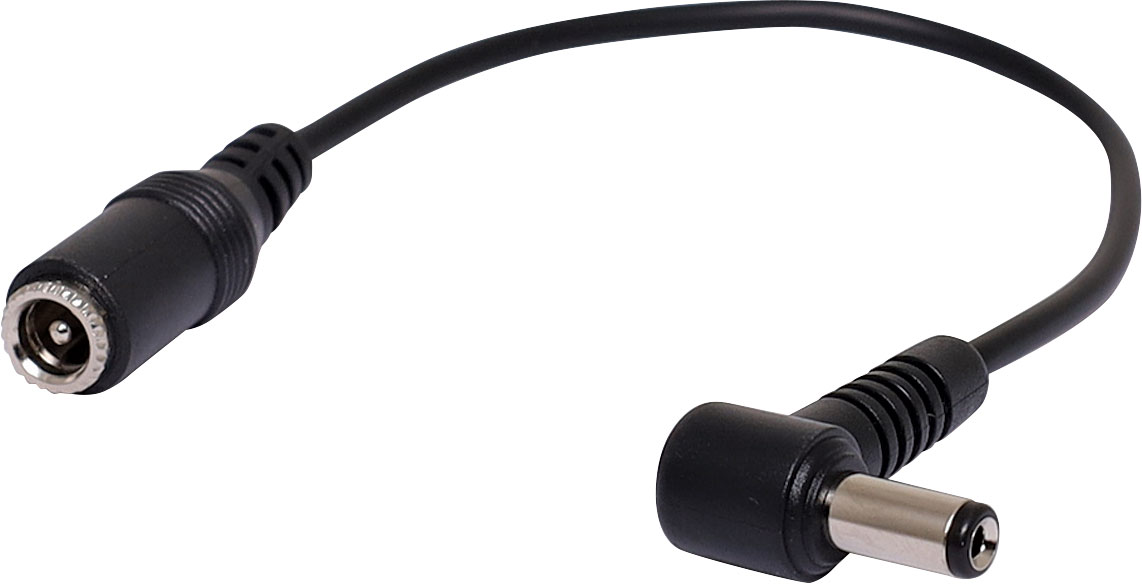 2.1mm Socket to 2.1mm right angle (90°) plug cable. Allows you to connect power to equipment with limited rear space behind equipment. Minimises cable strain and plug damage in tight spaces.