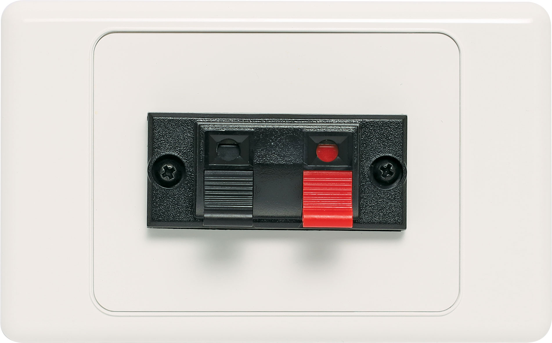 Single spring terminal for speaker connection. Altronics dual cover type wallplate. All wall plates assembled by Altronics are supplied with two facia clip on covers. These are designed to match your current decor. Simply clip on the desired cover after installation.