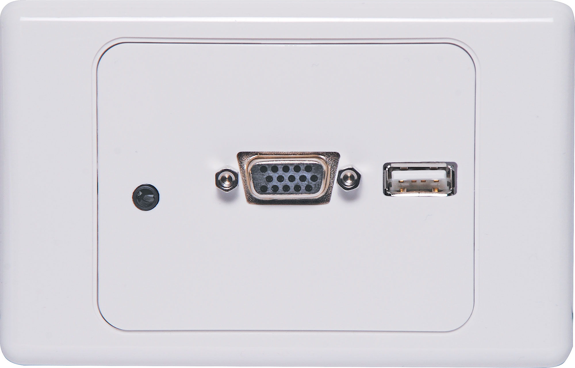 Plug Connection Type plates are designed for use with premade cables, reducing on-site installation time. No cable termination required! Wallplate fitted with HD9 female VGA connector, USB type A & 3.5mm audio on the front and rear of wallplate. Also fit