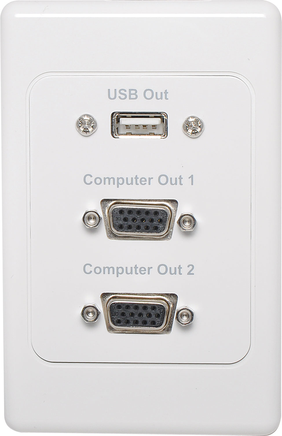 Plug Connection Type VGA Plates are designed for use with premade VGA cables, reducing on-site installation time. No cable termination required! Wallplate fitted with 2 x HD9 female VGA connector & USB type A on the front panel and rear flyleads. VGA
