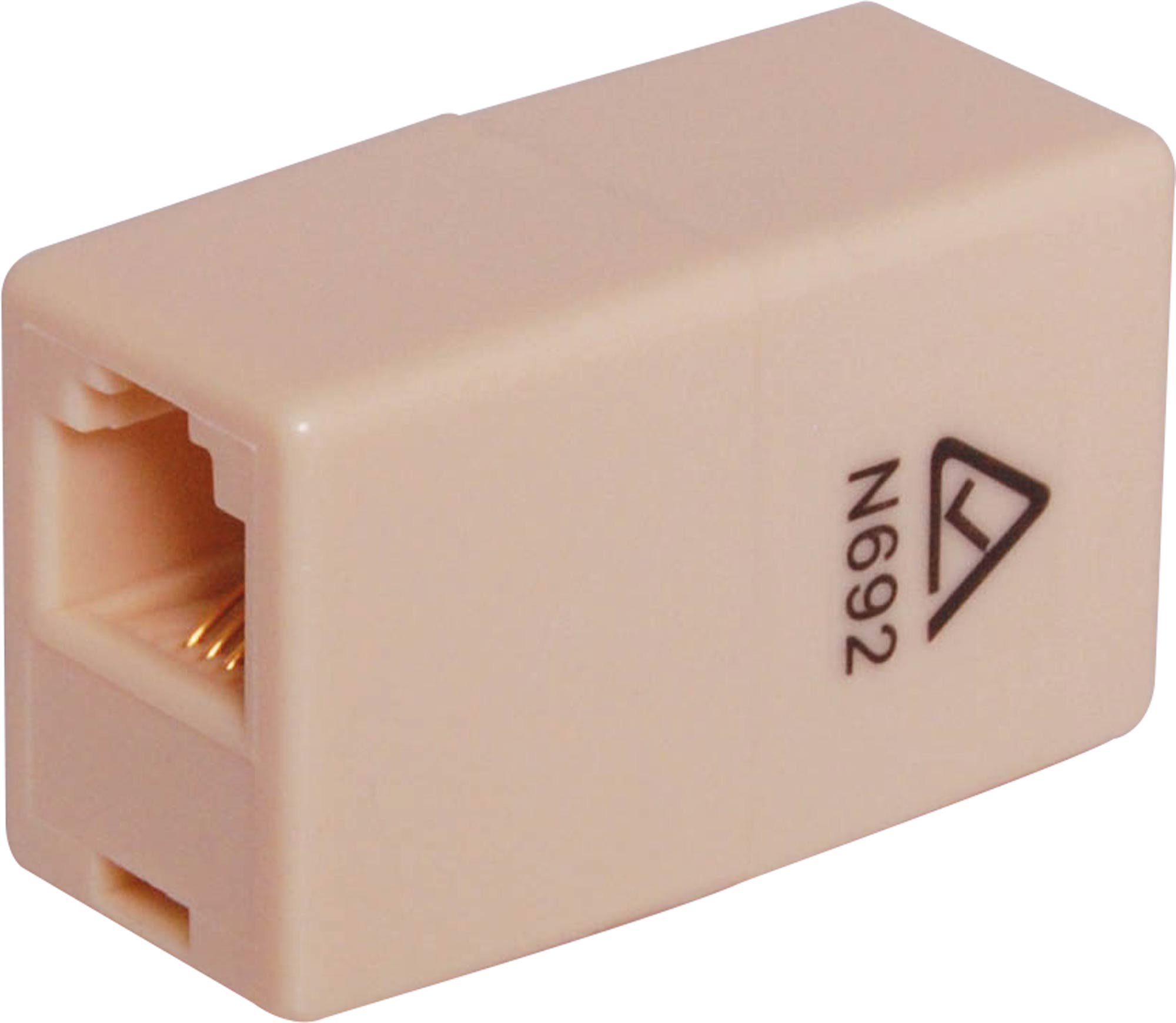 Modular female to female adaptor. 6 way 4 wire. Joins 2 telephone or computer network cables together.