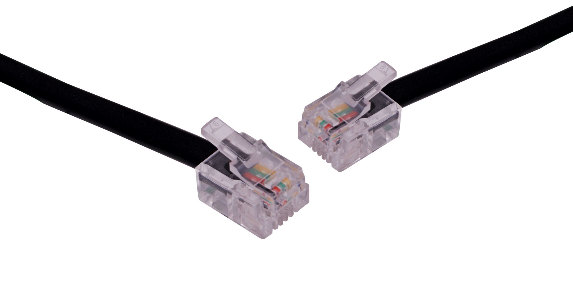 Standard telephone lead to connect your phone to a wall socket. Fitted with a 6P4C RJ14 modular plug at each end. Straight through connections. 2 metre length.