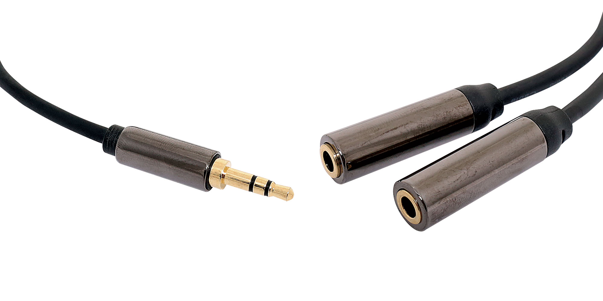 3.5mm Stereo plug - 2 x 3.5mm stereo sockets (Y lead) 30cm