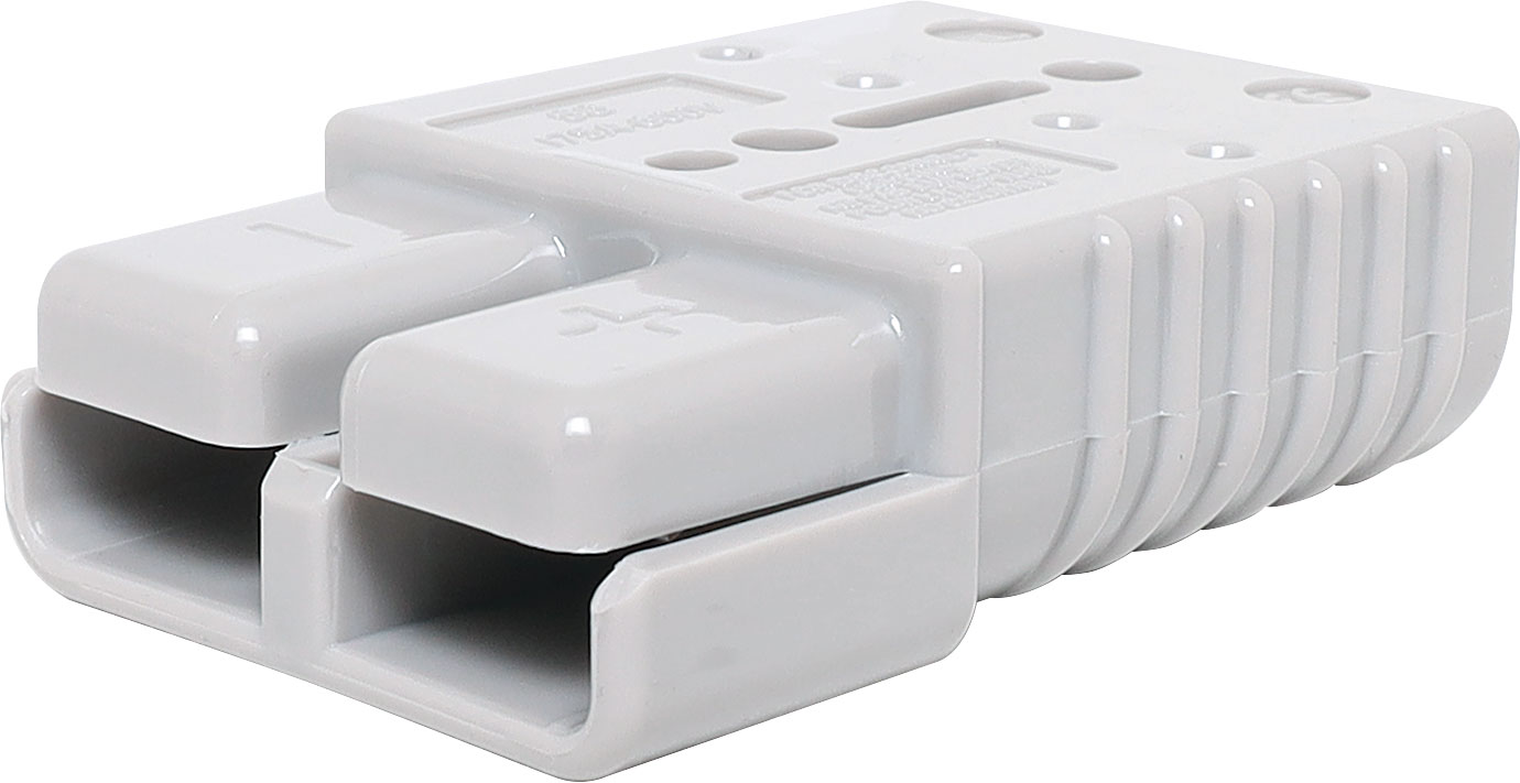 Anderson style grey 175A DC power connector. These heavy duty DC plugs feature a reversible gender design (the same plug can be used as both male and female). Not suitable for connecting or disconnecting circuits under load. 1/0AWG. Supplied with connector housing and two crimp lugs.