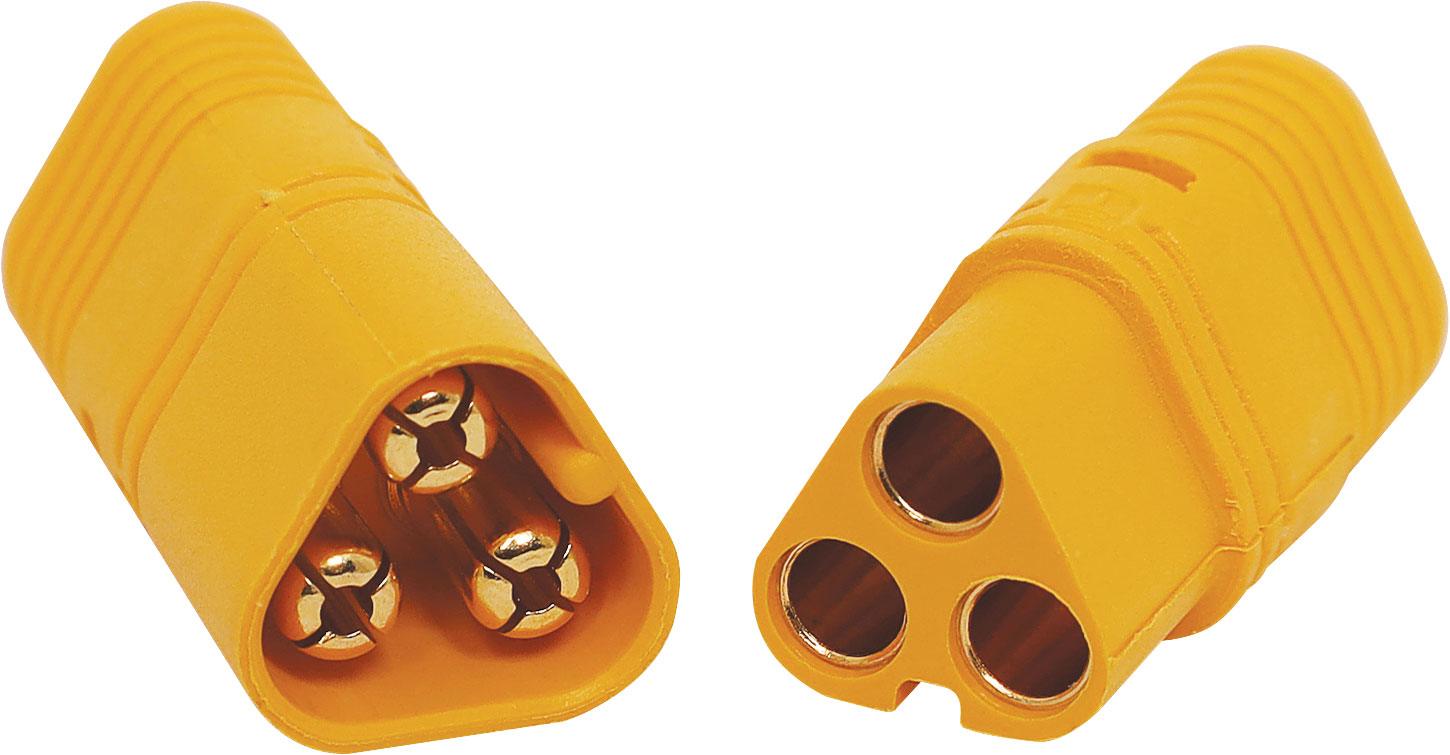 MT60 connectors are ideal for use as battery connectors in high current draw applications such as RC LiPo batteries. Supplied as plug & socket pair. 60A rated @ 500V DC. Includes both plug and socket.