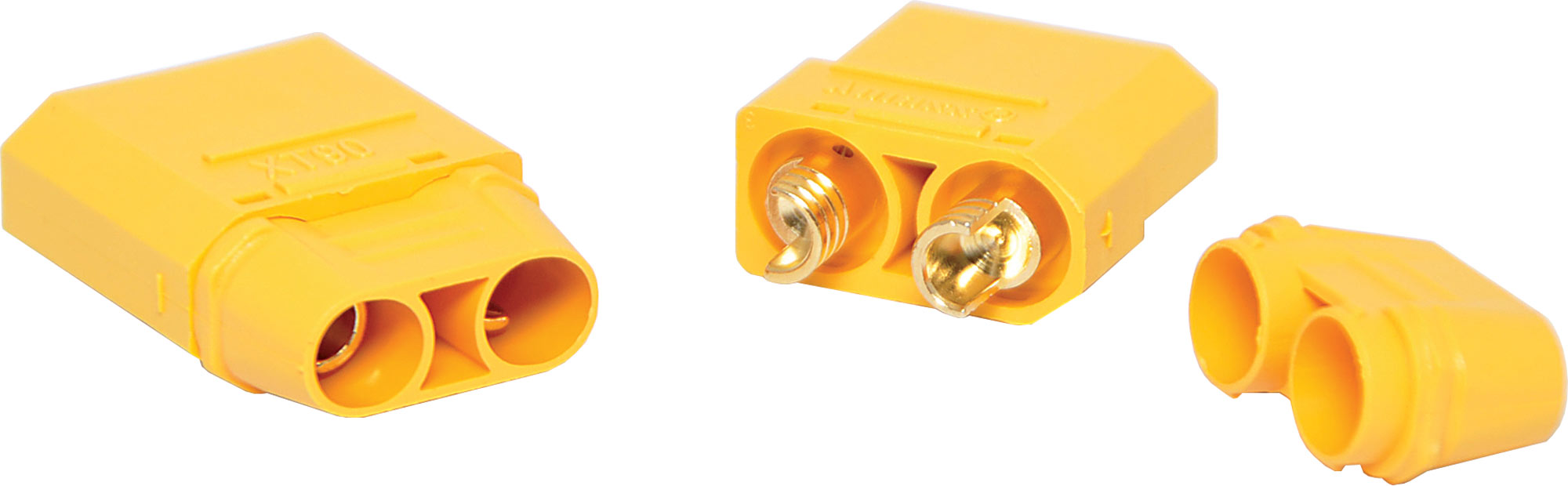 XT90 connectors are ideal for use as battery connectors in high current draw applications such as RC LiPo batteries. Supplied as plug & socket pair. 90A rated @ 600V DC. Includes both plug and socket. For cheaper version without strain relief, see P7825X